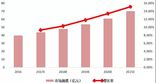 根據(jù)PWC機(jī)構(gòu)預(yù)測,2016 年,智能車和車聯(lián)網(wǎng)市場預(yù)計(jì)規(guī)模為403 億歐元(約 3000 億人民幣),2021年,預(yù)計(jì)市場規(guī)模為1226億(約 9000億人民幣),智能車和車聯(lián)網(wǎng)市場預(yù)計(jì)以平均每年 25%的速度增長,其中,安全部分占據(jù)最大比重,從2016年的155億歐元增長到493億歐元。按照 PWC 的預(yù)計(jì),智能汽車和車聯(lián)網(wǎng)全球市場空間未來有望達(dá)到萬億人民幣規(guī)模。