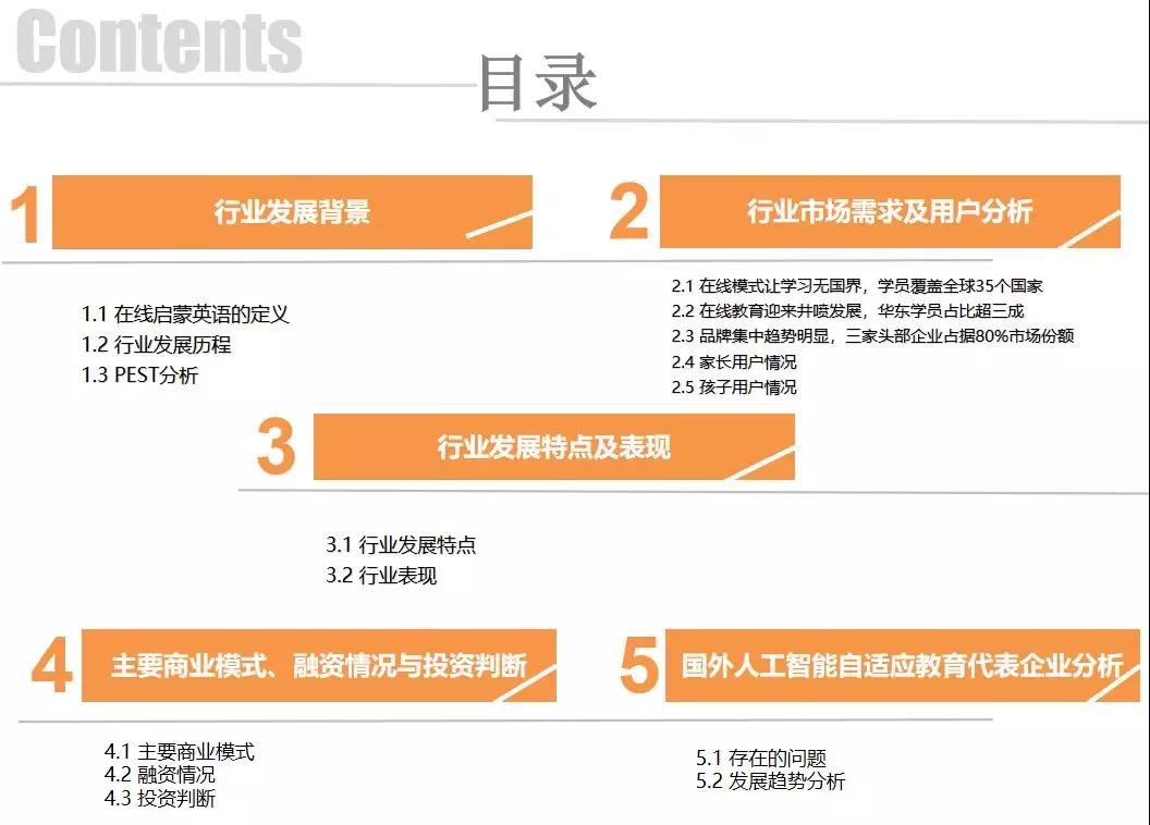 2017年,國(guó)務(wù)院對(duì)外發(fā)布《新一代人工智能發(fā)展規(guī)劃》,特別強(qiáng)調(diào)將利用智能技術(shù)加快推動(dòng)人才培養(yǎng)模式、教學(xué)方法改革,開(kāi)發(fā)基于大數(shù)據(jù)智能的在線學(xué)習(xí)教育平臺(tái)等。近年來(lái)人工智能在互聯(lián)網(wǎng)教育領(lǐng)域大規(guī)模展開(kāi),但在在線啟蒙英語(yǔ)教育中的應(yīng)用卻甚少,隨著資本的注入和行業(yè)的發(fā)展,有望通過(guò)人工智能進(jìn)一步提升用戶在線啟蒙英語(yǔ)學(xué)習(xí)的體驗(yàn)和效率。自適應(yīng)學(xué)習(xí)智能化推薦,與線下智能觸點(diǎn)(外語(yǔ)/雙語(yǔ)機(jī)器人)的連通將是AI+在線啟蒙英語(yǔ)的兩個(gè)潛在應(yīng)用點(diǎn)。AI賦能提升體驗(yàn)與效率