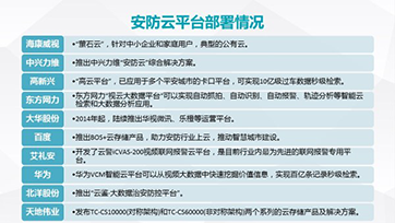 當(dāng)前平安城市和智慧城市的建設(shè)中,智能化分析已經(jīng)得以大量應(yīng)用,大量實(shí)例證明智能化分析在城市視頻監(jiān)控中的必要性。但目前安防,智能化不足是安防行業(yè)的主要頑疾之一,更加智能化將是未來(lái)發(fā)展方向和創(chuàng)新點(diǎn)。 另一方面,平安城市和智慧城市建設(shè)的重心已經(jīng)從前端的攝像頭等硬件設(shè)備向后端聯(lián)網(wǎng)平臺(tái)系統(tǒng)轉(zhuǎn)移。未來(lái)云平臺(tái)將成為安防企業(yè)競(jìng)爭(zhēng)的核心。多家企業(yè)已開(kāi)始布局安放云平臺(tái)通過(guò)云平臺(tái)可以引申出一系列配套的產(chǎn)品、服務(wù)和解決方案,未來(lái)平臺(tái)建設(shè)能力較強(qiáng)的廠商可通過(guò)將平臺(tái)免費(fèi)提供給用戶使用,而由于平臺(tái)轉(zhuǎn)換成本高,這將大大增加用戶的使用粘性。