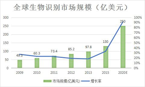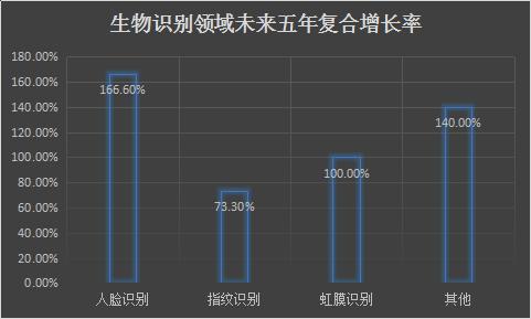 圖2 生物識(shí)別領(lǐng)域未來五年復(fù)合增長(zhǎng)率