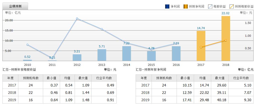 截至2017年8月3日,6個(gè)月以內(nèi)共有 24 家機(jī)構(gòu)對(duì)歐菲光的2017年度業(yè)績(jī)作出預(yù)測(cè)。預(yù)測(cè)2017年每股收益 0.54 元,較去年同比下降 21.65%;預(yù)測(cè)2017年凈利潤(rùn) 14.74 億元,較去年同比增長(zhǎng) 105.09% 。