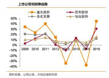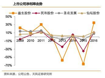 受產(chǎn)品價格彈性影響,越靠近上游,盈利能力的波動越大。財務(wù)指標上,毛利率、凈利率的波動,益生股份>民和股份>圣農(nóng)發(fā)展>仙壇股份。