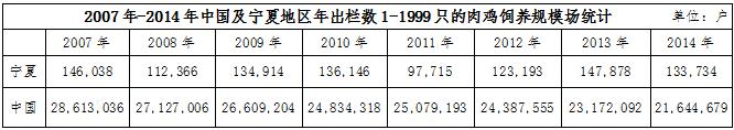從以上數(shù)據(jù)分析可知,寧夏的肉雞飼養(yǎng)規(guī)模上得不到很好的提升,大多數(shù)都僅僅是靠家庭小規(guī)模飼養(yǎng)為主,大規(guī)模的飼養(yǎng)場在寧夏地區(qū)非常匱乏。不僅對寧夏肉雞行業(yè)的市場影響非常混亂,也不能達到更高更優(yōu)質(zhì)的產(chǎn)量,提升寧夏肉雞行業(yè)市場競爭力顯的尤為困難。