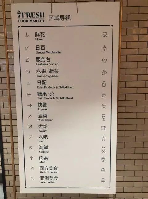 如上圖所示,不同于盒馬鮮生面積小、以海鮮為主的特點(diǎn),7fresh總面積超過(guò)4000平米,涉及品類廣泛,包括鮮花、日百、快餐、烘焙、海鮮、肉類等。