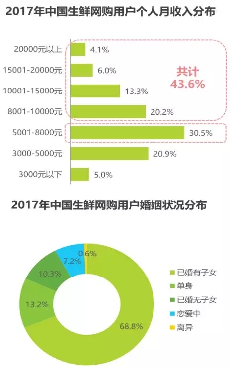 從用戶屬性來(lái)看,體驗(yàn)過(guò)創(chuàng)新模式的用戶中高學(xué)歷、高家庭月收入的人群占比均高于整體生鮮網(wǎng)購(gòu)用戶,與創(chuàng)新模式中高端消費(fèi)者的定位相吻合。體驗(yàn)過(guò)創(chuàng)新模式的用戶中78.2%擁有大學(xué)本科及以上學(xué)歷,80.7%的用戶家庭月收入在10000元以上,其中家庭月收入在10001-15000元的用戶最多,占比達(dá)28.2%。