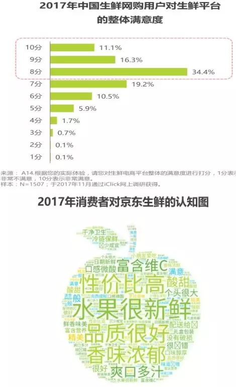? 用戶對(duì)生鮮網(wǎng)購(gòu)整體滿意度較高;京東生鮮各維度滿意度均高于行業(yè)整體,物流配送方面優(yōu)勢(shì)明顯。