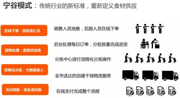 寧谷物配以“易訂貨”軟件為依托,欲打造區(qū)內(nèi)最大的城市商用食材供應(yīng)鏈平臺(tái);其商業(yè)模式是用平臺(tái)化團(tuán)購(gòu)方式+城市內(nèi)自建物流配送體系,實(shí)現(xiàn)對(duì)城市餐飲商戶所需食材的全方位供應(yīng)。其生鮮B2B模式在銀川城區(qū)已初具規(guī)模,具有代表性,本報(bào)告將著重分析。