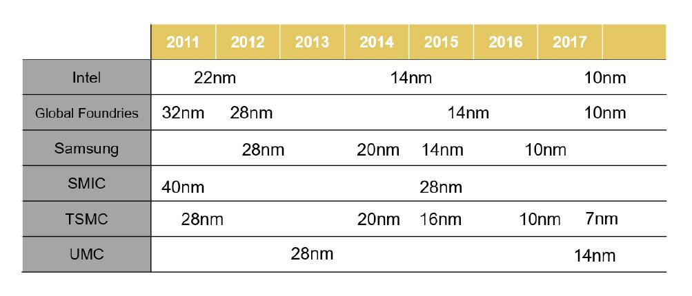 以目前最受重視的晶圓代工領域來說,龍頭臺積電預計在2018 年量產(chǎn)7 納米制程,中國最大晶圓代工廠中芯國際目前只有28 納米。國內(nèi)制造大廠近年來在不斷進步,高速發(fā)展,但是距離全球最領先的晶圓代工廠的先進工藝制程水平還有一段距離。